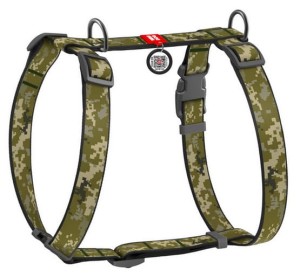 Collar WauDog Nylon Szelki nylonowe anatomiczne w kształcie litery H, z QR-paszportem, plastikowy fastex, wzór MILITARY, rozmiar S 15mm