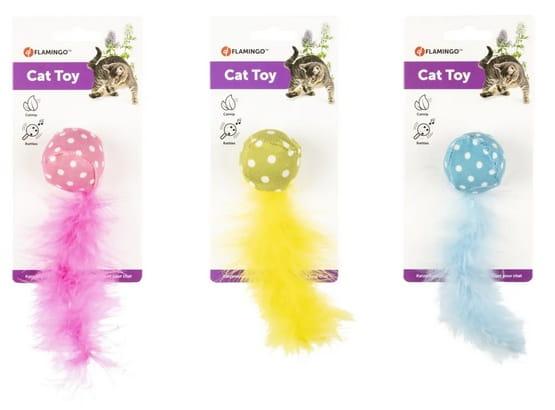 Twarda piłeczka w kropki i miękki piórkowy ogonek!