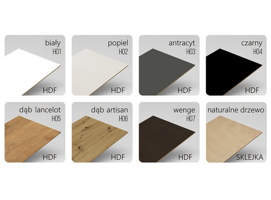 - Wykonany z naturalnej, wytrzymałej tektury falistej, drewnianego lica lub płyty HDF.