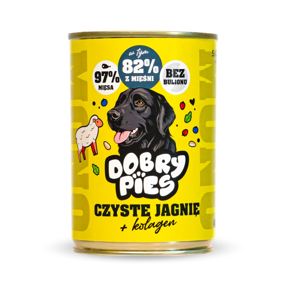 Zawiera 97% delikatnej jagnięciny, uzupełnionej borówkami, jagodami goji, pestkami dyni i natką pietruszki – naturalnymi źródłami błonnika, antyoksydantów i cennych mikroelementów. Dzięki temu karma jest lekkostrawna, bogata w wartościowe białko i bardzo dobrze przyswajalna, także dla psów o wrażliwym układzie pokarmowym. Hydrolizowany kolagen wspiera stawy, a witaminy i minerały pomagają utrzymać codzienną witalność. Krótki skład – bez zbędnych wypełniaczy.