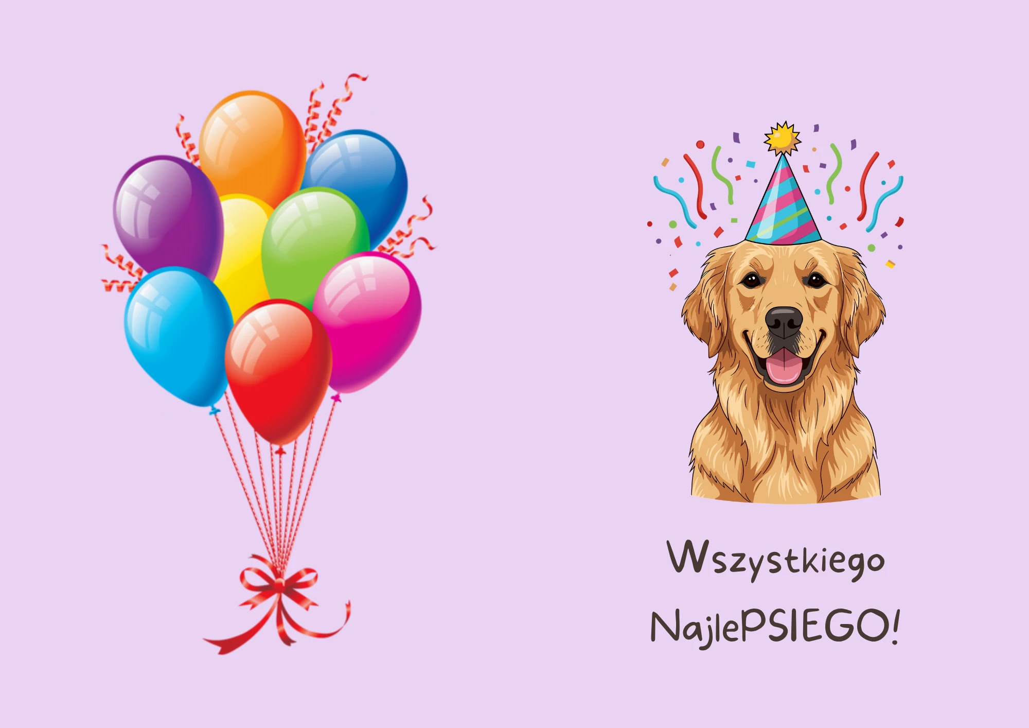 Na froncie znajdziesz radosną, kolorową grafikę z uroczym psiakiem w czapeczce oraz napis: „Wszystkiego NajlePSIEGO!”