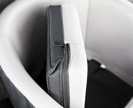 Uwaga: Siedzisko i zintegrowana krótka smycz są przymocowane do siedzenia za pomocą pasa samochodowego. Nie zapewnia to bezpieczeństwa ani zwierzęciu, ani pasażerom, ale zapobiega przewróceniu się lub ześlizgnięciu z fotela samochodowego. Pies podczas jazdy zawsze powinien być przypięty za pomocą specjalnej uprzęży bezpieczeństwa, która będzie przymocowana do zintegrowanej krótkiej smyczy.