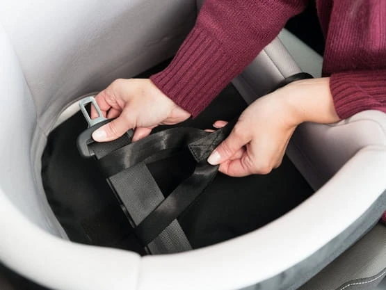 - Mocowanie siedziska i paska mocującego za pomocą samochodowego pasa bezpieczeństwa